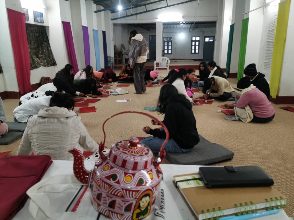 नैनीताल।अयारपाटा स्थित अरविंदो आश्रम में स्कूल ऑफ डिज़ाइन ऑरो यूनिवर्सिटी के छात्र-छात्राओं के लिए उत्तराखंड की समृद्ध लोक संस्कृति एवं पारंपरिक कला ‘ऐपण’ पर एक विशेष सत्र आयोजित किया गया। इस दौरान विद्यार्थियों को ऐपण की परंपरा, महत्व और उसकी विशिष्ट शैली से अवगत कराया गया, साथ ही उन्हें इसका व्यावहारिक प्रशिक्षण भी दिया गया।कार्यक्रम के अंतर्गत ऐपण पर एक दिवसीय कार्यशाला का आयोजन किया गया, जिसमें श्रीमती दीपा चौधरी एवं रेनू आर्या द्वारा अत्यंत कुशलता के साथ ऐपण की बारीकियां सिखाई गईं। विद्यार्थियों ने उत्साहपूर्वक भाग लेते हुए इस पारंपरिक कला को सीखने में गहरी रुचि दिखाई।कार्यशाला के सफल आयोजन में अमित सुठा, आयुष मेहरा तथा सभासद मनोज साह जगाती का महत्वपूर्ण सहयोग रहा।