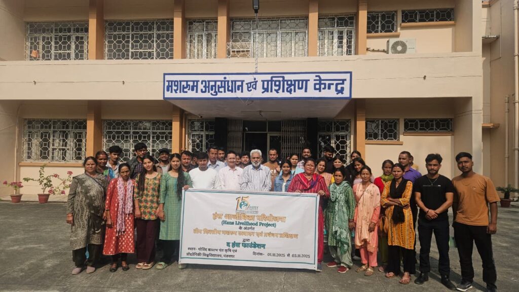 पंतनगर।हंस फाउंडेशन द्वारा गोविंद बल्लभ पंत कृषि और प्रौद्योगिकी विश्वविद्यालय, पंतनगर में हंस आजीविका परियोजना के तहत एक तीन दिवसीय प्रशिक्षण कार्यशाला का आयोजन किया गया है। इस कार्यशाला में अल्मोड़ा (हवालबाग ब्लॉक) और पौड़ी गढ़वाल (एकेश्वर ब्लॉक) से 50 लाभार्थियों ने भाग लिया है।यह कार्यशाला 1 नवंबर 2025 से 4 नवंबर 2025 तक आयोजित की जा रही है, जिसमें विशेषज्ञों द्वारा बटन मशरूम उत्पादन की तकनीक, बीज उत्पादन, और बाजार की संभावनाओं पर विस्तृत जानकारी दी जाएगी। प्रतिभागियों ने मशरूम उत्पादन के विभिन्न पहलुओं को सीखा और अपने अनुभव साझा किए।हंस फाउंडेशन के इस प्रयास से क्षेत्र के लोगों को स्वरोजगार के नए अवसर प्राप्त होंगे और वे अपने परिवार की आय बढ़ाने में सक्षम होंगे। कार्यशाला के अंत में सभी प्रतिभागियों को प्रमाण पत्र वितरित किए जाएंगे।इस कार्यशाला का उद्देश्य ग्रामीण क्षेत्रों में मशरूम उत्पादन को बढ़ावा देना और लोगों को आत्मनिर्भर बनाना है। हंस फाउंडेशन की यह पहल क्षेत्र के विकास में महत्वपूर्ण भूमिका निभाएगी।