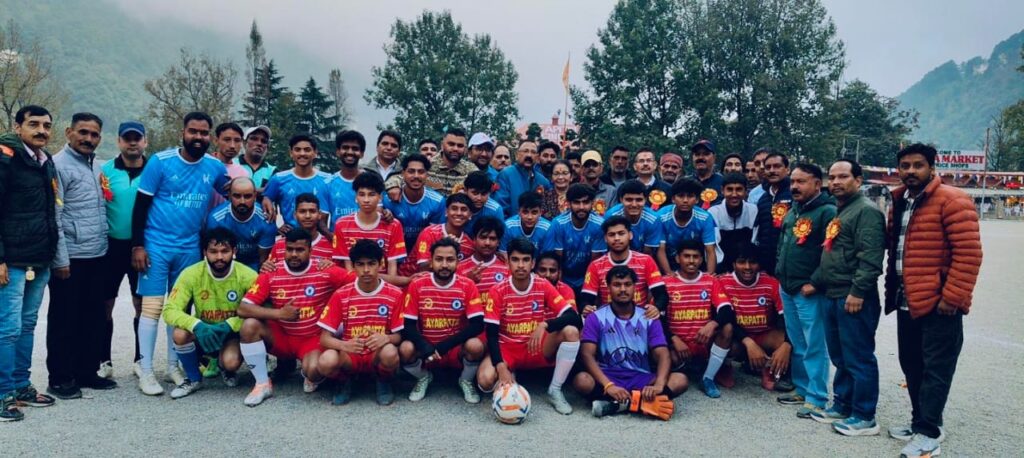 नैनीताल।नगर के ऐतिहासिक फैलट्स मैदान में नगर पालिका मनोरंजन क्लब द्वारा आयोजित प्रथम कुमाउं कप फुटबॉल प्रतियोगिता का रविवार को नगर पालिका अध्यक्ष डॉ.सरस्वती खेतवाल द्वारा विधिवत शुभारंभ किया।उद्धाटन मैच अयारपाटा व यूके बॉयज के मध्य खेला गया।जिसमे दोनों ही टीमें कोई गोल नही कर पाई।वही सोमवार से प्रति दिन दो मैच खेले जाएंगे।बता दे कि विजेता टीम को 50 हजार रुपये नगद व ट्रॉफी तथा उपविजेता टीम को 25 हजार रुपये नगद व ट्रॉफी देकर सम्मानित किया जाएगा।उदघोषक दीपक कुमार,रेपरी मो.अयूब,देवेन्द्र बोरा,व्रजेश बिष्ट,स्कोरर जनक बिष्ट रहे।आगे पढ़ें कौन रहा मौजूद……
